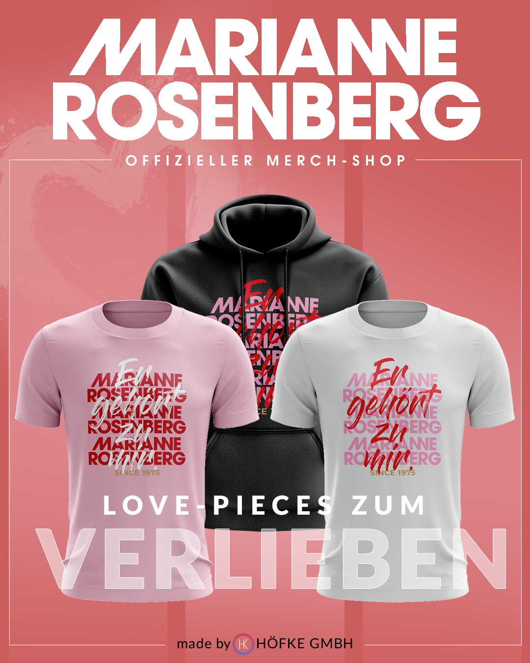 Ob Merchandise für Schlagerstars wie Marianne Rosenberg, personalisierte Textilien für Kindergärten, Teams, Junggesellenabschiede, Geburtstage oder Schulkinder oder professionelles Künstlervermittlung – wir bringen Ideen auf den Punkt und Produkte zu den Menschen.